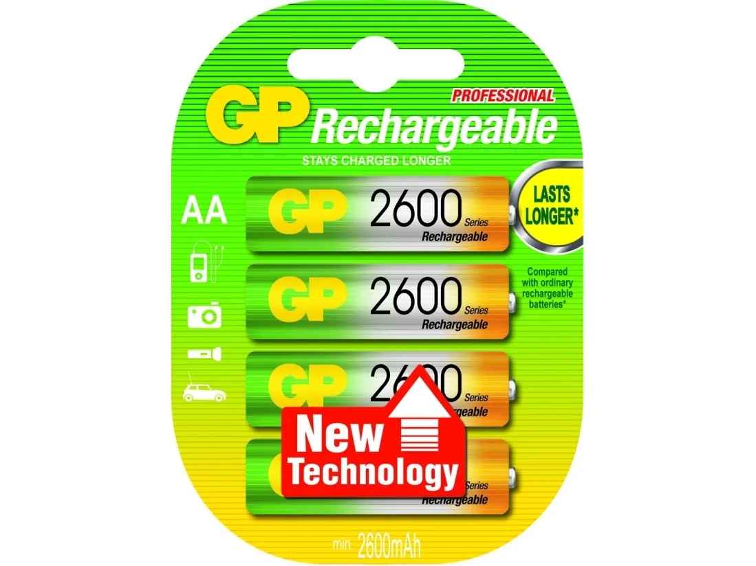 GP Batteries AA, Oppladbart batteri, AA, Nikkelmetallhydrid (NiMH), 1,2 V, 4 stykker, 2600 mAh