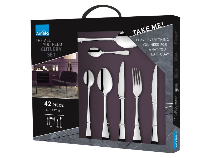 Det svært komplette 42-delers Roma 'Alt du trenger' bestikksettet fra Amefa har alt du trenger til både festlige anledninger og hverdagsmat. Ideell som forrett eller bare som gave. Alt du trenger for å feire bordet på en festlig måte er i dette veldig komplette settet alt du trenger!
