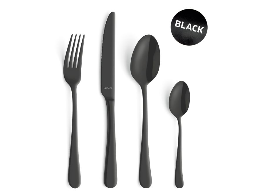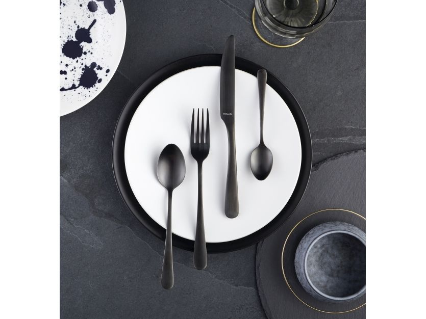Dæk bordet med bestik i sort og mat finish, og tilføj et stilet look til borddækningen.