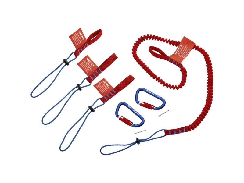 00 50 04 T BK Sikringssystem-sæt Komplet sæt til pålidelig sikring af værktøjet: Gennemprøvet holdbarhed gennem talrige faldtests for værktøj op til 1,5 kg. Sæt med fangline, adapter-strop og materiale-karabiner. Når de enkelte dele kombineres, fås et system, som kan anvendes på mange måder og med rigtig mange fastgørelsesmuligheder. Mindsker risikoen for tab af værktøj samt skader på både levende væsener og genstande. Til arbejde i løftekurv, i højder, i dybder eller fra reb: Eksempelvis industriklatring, skaktarbejde, redningstjenester, trækapning, broarbejde, vindkraftanlæg eller på havet. Den ca 90 cm lange rem af rynket stofbånd strækker sig ved belastning ud til en længde af ca. 1,5 m. Passer til alle KNIPEX-tænger med fastgørelsesøje eller TetheredTool clips. Max. Belastning: 1,5 kg værktøjsvægt. IKKE PVM = Ikke personligt værnemiddel.