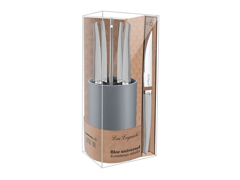 Lou Laguiole - Steaks Knive- elegant satinfinish -6 stk & kniv holder