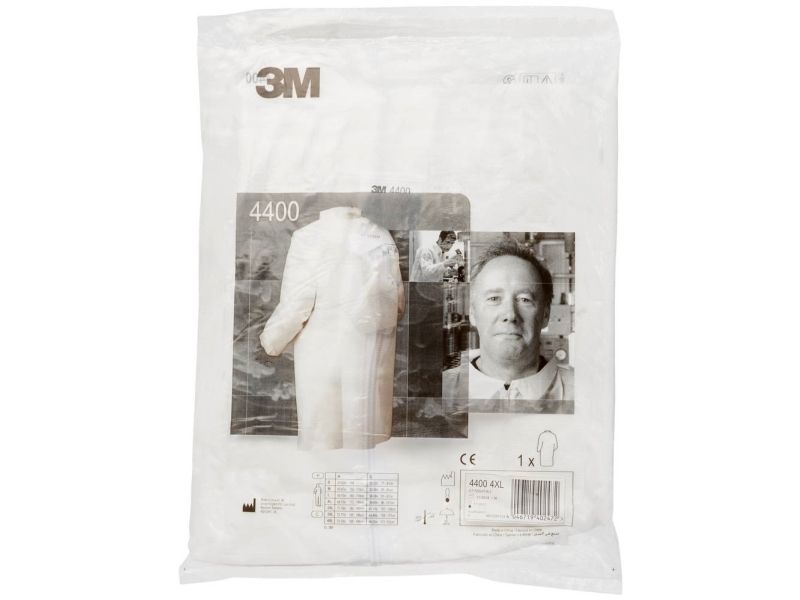 3M™ engangskappe 4400 er velegnet til at gæste eller laboratoriekittel. Polypropylen-materialet er særligt let og åndbar. Takket være lynlåsen kan engangskappen nemt trækkes ud og tages af. Modellen 3M™ engangskappe 4400WXL har størrelse XL og farven hvid.