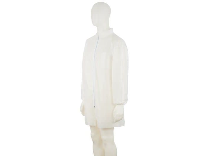 Materiale: 100 % polypropylen · Antistatisk udstyr · Lynlås foran · Indvendig lomme · Elastiske bundter