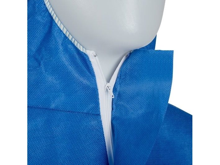Type 5/6-beskyttelsesdragt giver en billig beskyttelse mod sundhedsskadelige støv som asbestfibre · Er fremstillet af særligt åndbart fleecemateriale (SMS) og affører kropsvarme og fugt for at reducere varmebelastninger · Blødt og stærkt (50 g/m²) SMS-materiale til kraftig belastning · Todelte Kapuze, 2-vejs-lynlås og flap med elastisk ryg- og ankelområde, der minimerer risikoen for fritliggende hud · CE Kat III type 5/6 beskyttelse mod sundhedsskadelige partikler, flydende kemikalier (betinget spraytæt) og radioaktivt forurenede partikler · En 1073-2 beskyttelse mod radioaktive, kontaminerede partikler