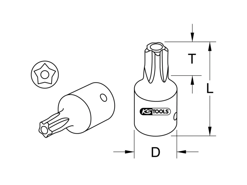 1/4 bit-topnøgle-indsats, femstjernet med endehul, TS15