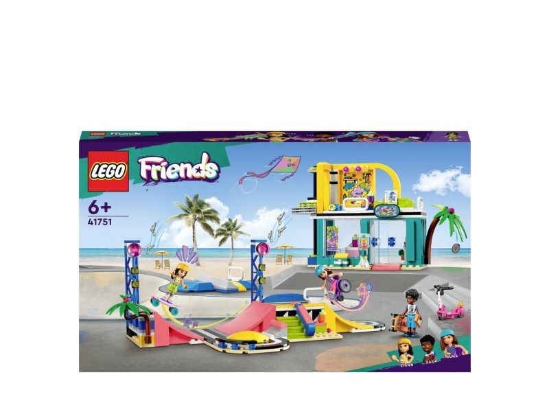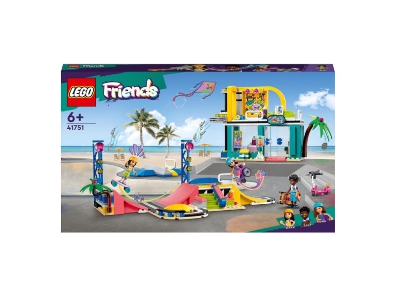 Stimuler barns kreativitet, og styrk eventyrlysten deres med LEGO® Friends settet Skatepark (41751) for barn fra seks år. De møter spennende figurer og kan se hvordan hver enkelt av dem utfordrer seg selv på forskjellige måter i skateparken. Barn kan få figurene til å utføre tøffe triks ved hjelp av ramper og rails. Etterpå kan de fortsette leken ved å dra til parkhuset for å reparere hjul på verkstedet der. Barn kan leke at figurene tar heisen opp til chill-out-området, hvor de kan slappe av ogkose seg. Dette gøyale lekesettet viser barn hvordan vennskapets kraft kan gi oss mot til å teste ut nye ting.