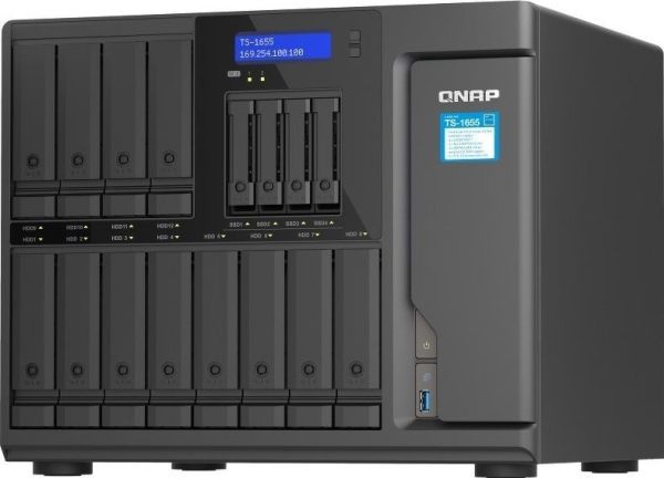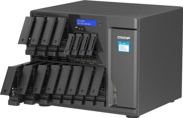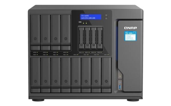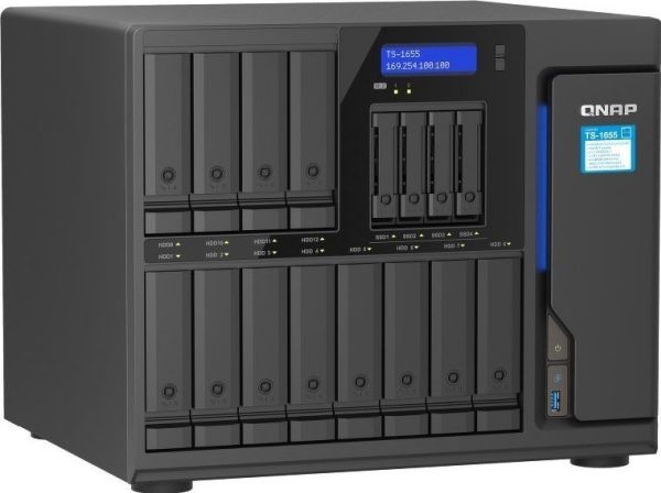 Balance performance and cost with hybrid storage. Designed for diversified business IT environments, the high-capacity TS-1655 has twelve 3.5-inch SATA drive bays (for HDDs) and four 2.5-inch SATA drive bays (for SSDs) with 2.5GbE high-speed connectivity. Fueled by an immense 8-core Intel Processor, the TS-1655 presents a secure, scalable, and complete business-ready storage solution for cross-team file sharing, collaboration, backup and disaster recovery, virtualization, and intensive data transmission. The TS-1655 will be available and supported by QNAP for an extended period (up to 2027), ideal for businesses requiring matching NAS models deployed in multiple locations.