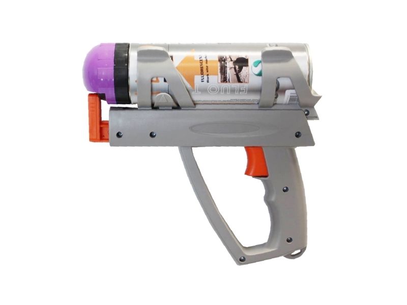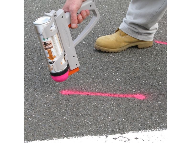 Markeringspistol med en Pureno Markering Spray monteret kan anvendes til markering på vægge, trapper m.m.
