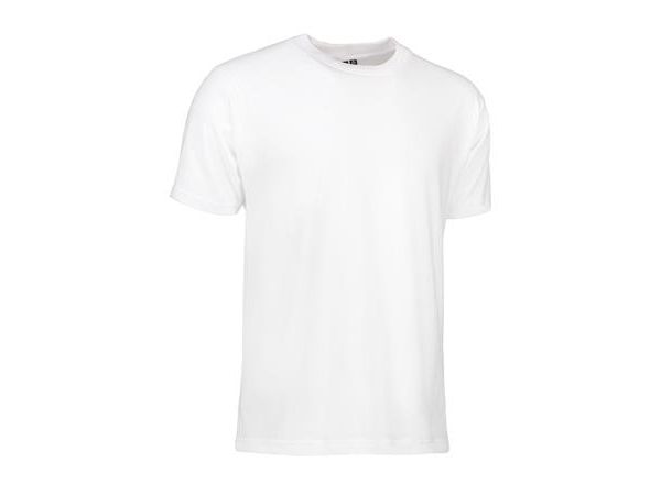 Klassisk T-shirt med rund hals, fire-lags halsrib og nakke- og skulderbånd. Holder faconen vask efter vask.