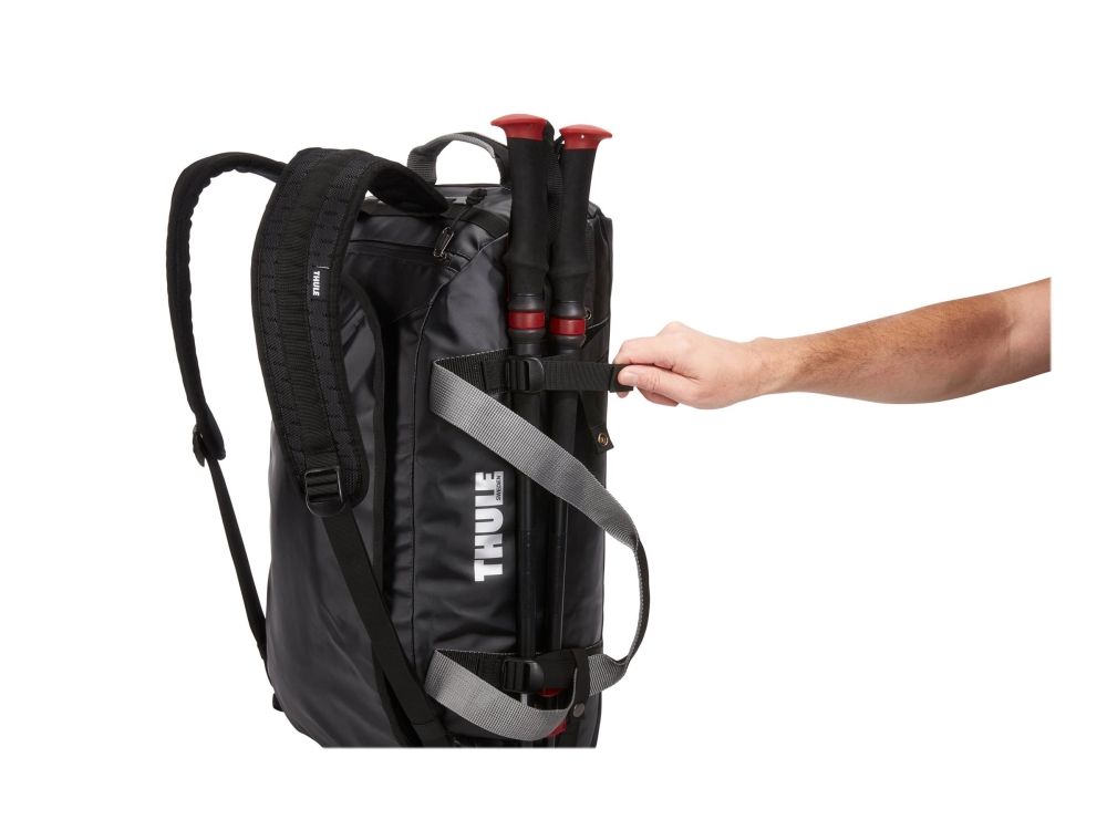 The Thule Chasm duffle bag is designed to meet the demands of active lifestyles, offering versatility and durability. Constructed from tough 840D nylon and TPE laminate, this weatherproof bag ensures that your belongings stay protected against the elements. The spacious 40-liter capacity makes it ideal for travel or sports, while the internal mesh pocket provides an organized space for smaller items. With multiple carrying options, including top and side carry handles, compression straps, and removable backpack straps, the Thule Chasm adapts to your carrying preferences.