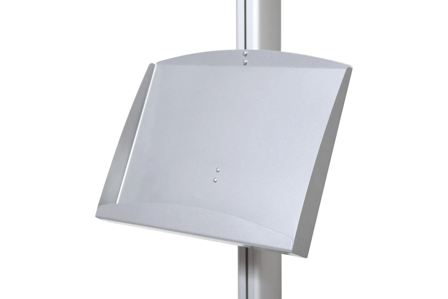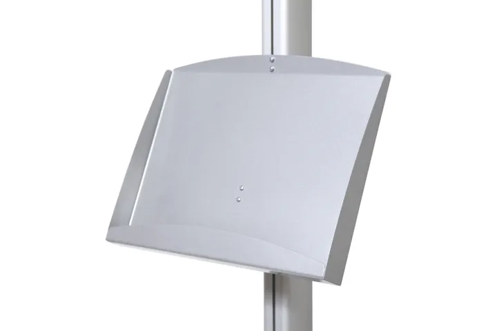 TWIN Infostand lavet af aluminium med stålhylder og en ekstra tung fod for stabilitet. TWIN Infostand leveres med en klikramme og en 2 stål brochureholdere til ialt 4 x A4 eller 2 x A3. • Informationsdisplay.• Stabil – ekstra tung fod.• Monteret med klikramme med 30mm profil.• Plads til 4 x A4 eller 2 x A3 brochurer.Anbefales kun til indendørs brug.