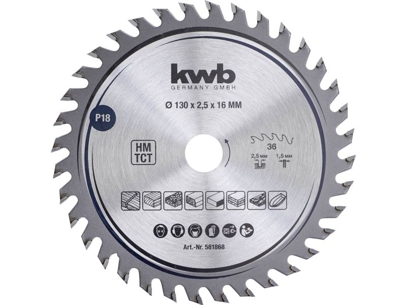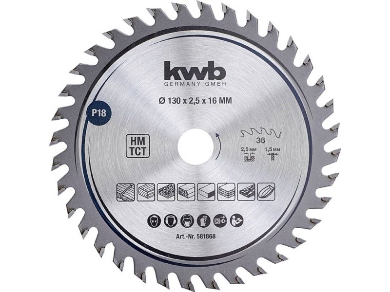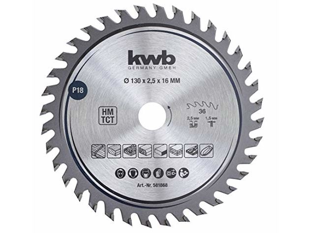 Hårdmetal-udstyret, hurtige, fine snit med afrivningsfrie skærekanter. Fintandet, til håndholdte rundsave Til fuldtræ, belagte spånplader (arbejds- og køkkenarbejdsplader), møbel-, spån- og fiberplader samt glasfiberforstærkede kunststoffer.