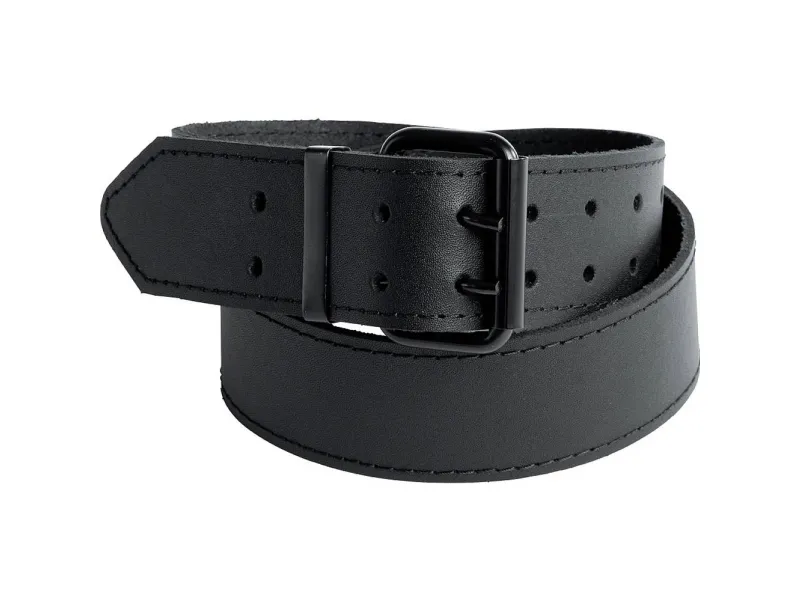 Læderbælte Læderbælte af 3 mm ekstremt robust okselæder i sort, enkel nærserie af læder med sølvfarvet tråd, sort dobbeltkrop metalspænder.