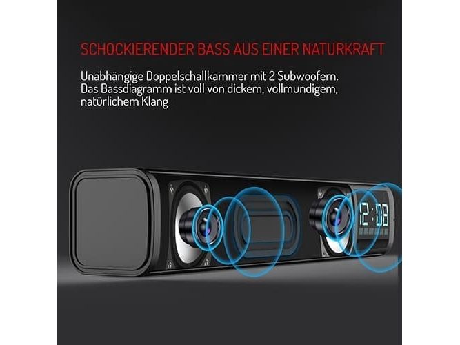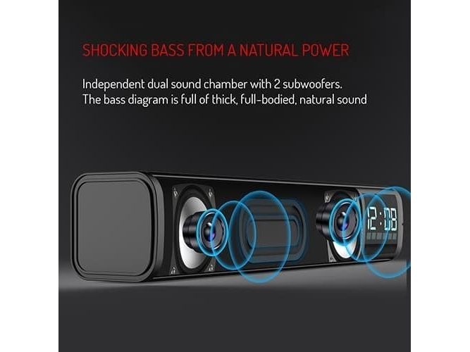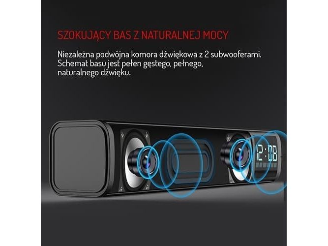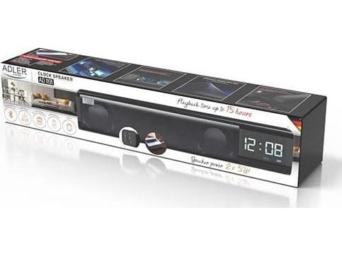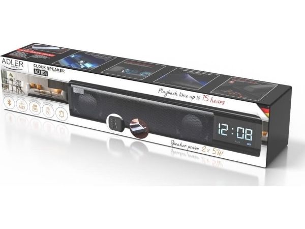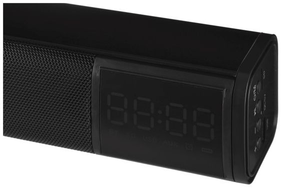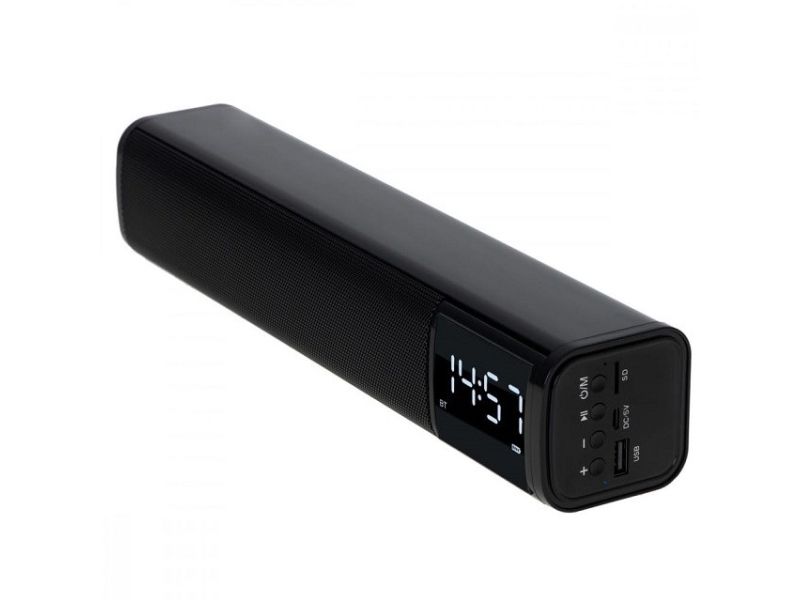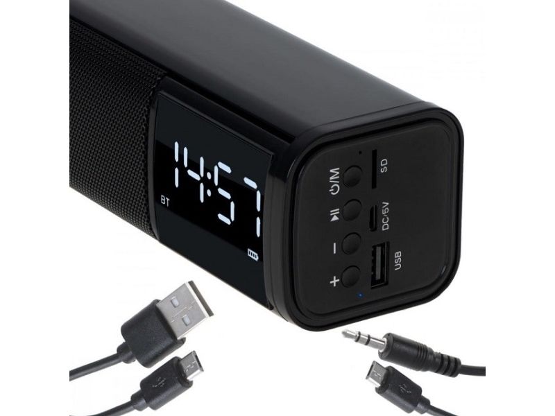 Bluetooth v 5.0, AUX input, SD card Stereo Speaker power: 2x 5W Alarm, Clock Battery: 1200 mAh Standby time up to 30 days. Charging time up to 3 hours.