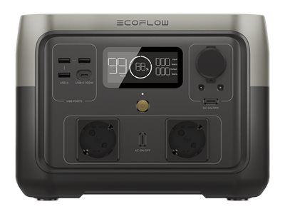 EcoFlow RIVER 2 Max - Bærbar strømstasjon - AC 220-240/ DC 11-50/12/24 V - 1000 watt - litium-jernfosfat - 512 Wh - Wi-Fi, Bluetooth - utgangskontakter: 9 - Europa