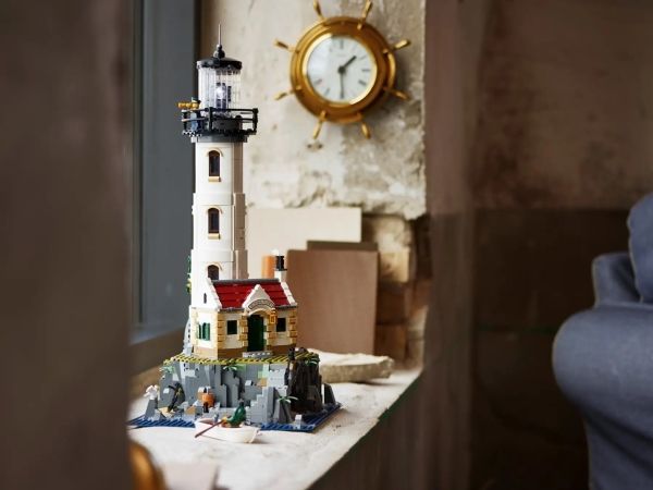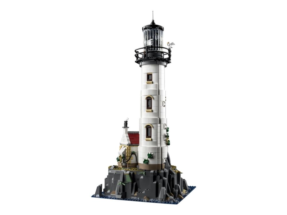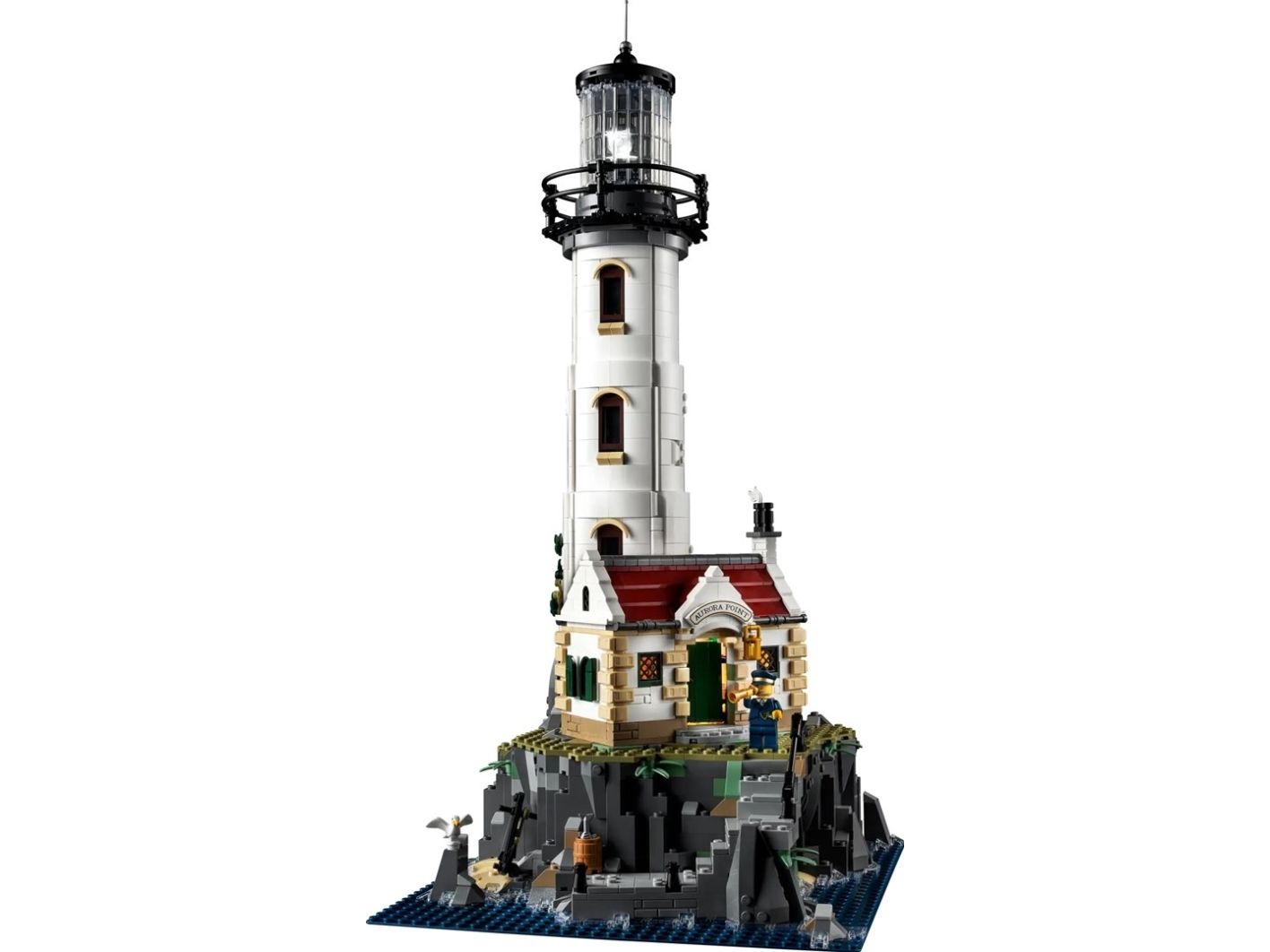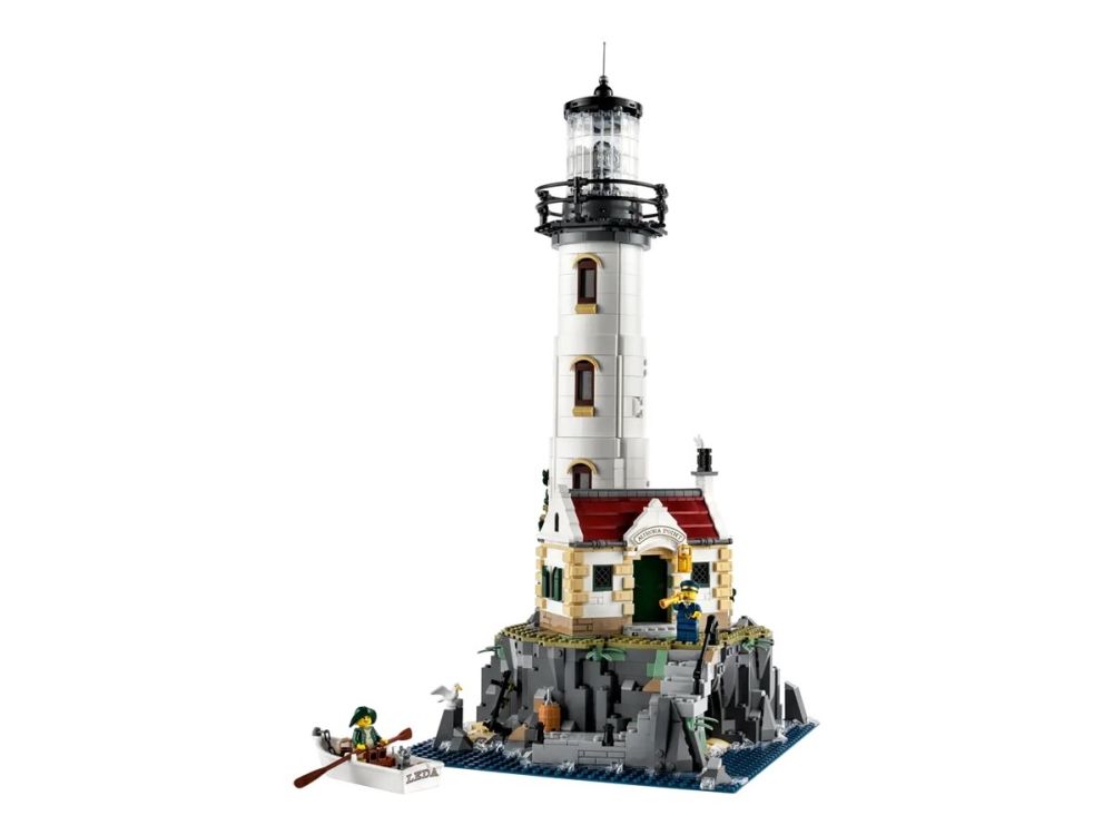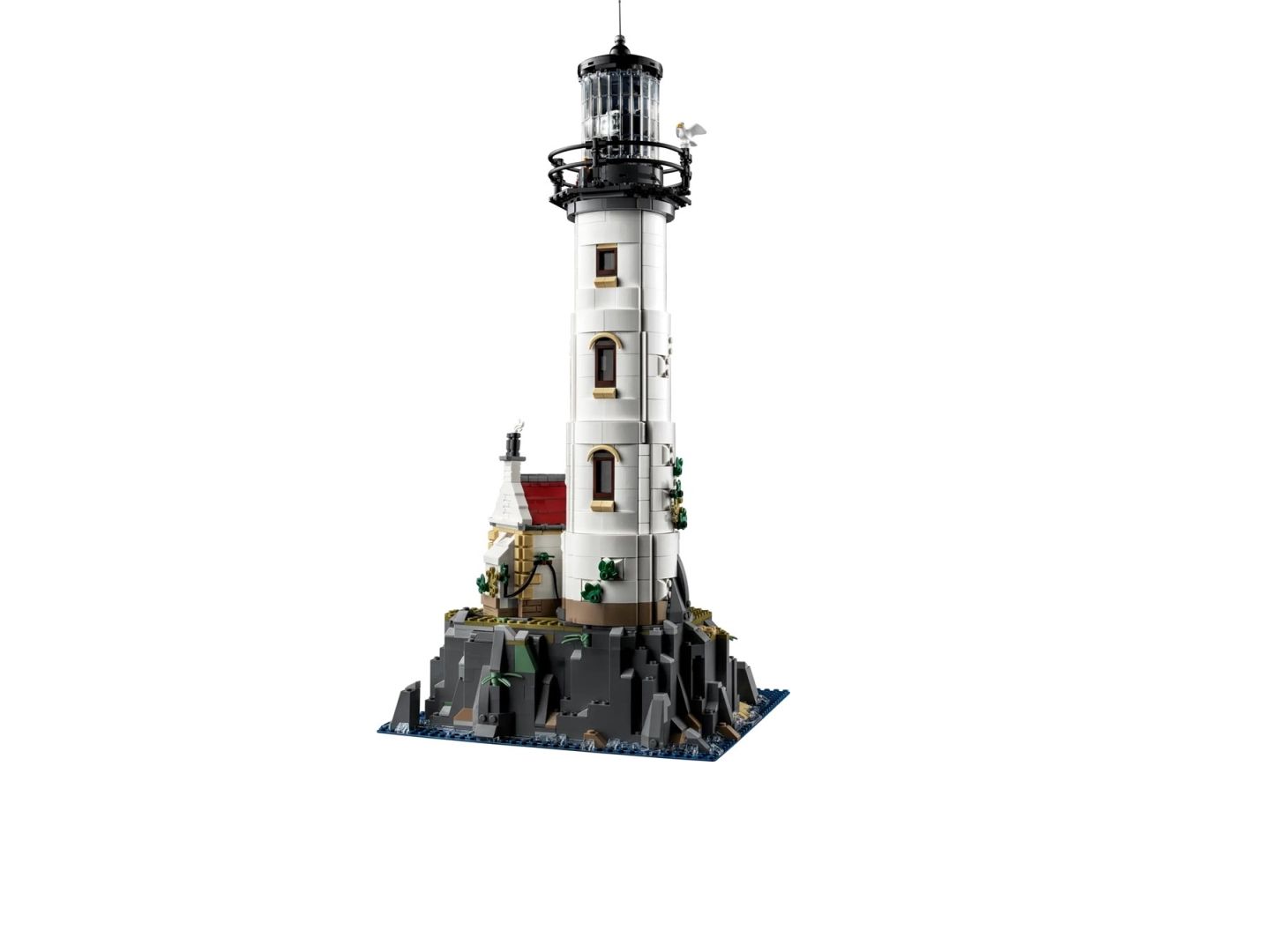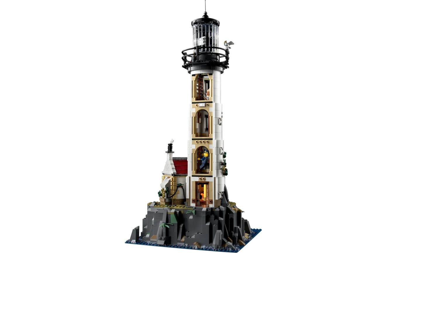 Motorisert fyr (21335) utstillingsmodell – tenn et lys for kreativiteten med dette utrolig detaljerte, byggbare fyret som står på fjellgrunn, og inkluderer brygge, trapper, hule og fyrvokterbolig