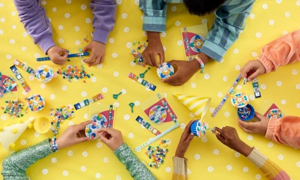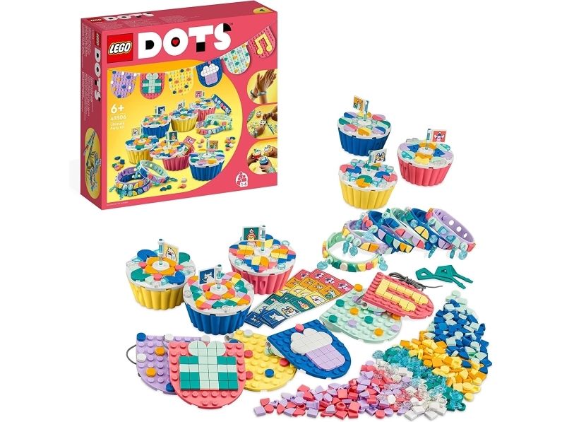 1. Kreativ dekorering – overrask barn med sans for hobbysett, med gøyale LEGO® DOTS Kult festsett (41806), som inkluderer seks cupcaker, seks armbånd, seks girlanderseksjoner og mer, og som passer for barn fra seks år