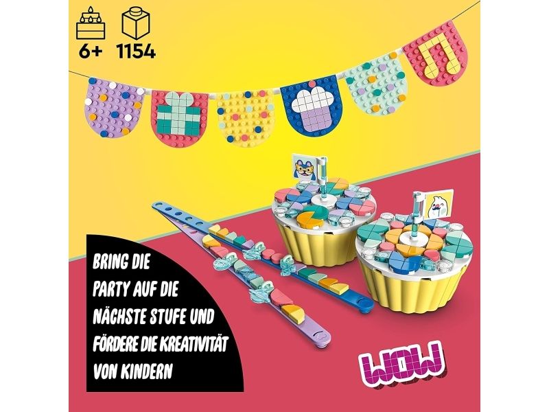 DOTS sett gir barn muligheten til å oppleve gøyal LEGO lek og eksperimentering med sett de kan bygge og dekorere. Siden magien ligger i barnas egen fantasi, er alt mulig med disse settene. Det kule festsettet gir barn en kreativ gruppeaktivitet og gøyale gaver de kan ta med hjem når sammenkomsten er over.