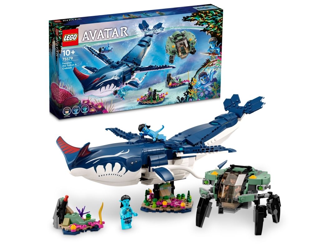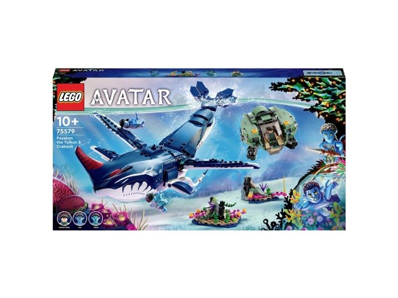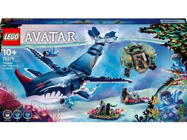 Dykk ned på dypet på eksoplanet-månen Pandora med LEGO® Avatar byggesettet Tulkunen Payakan og krabbedrakten (75579). Barn og Avatar-fans fra ti år kan gjenoppleve favorittøyeblikkene sine fra filmen, skape dynamiske scener og finne på spennende historier med den bevegelige tulkun-figuren, krabbedrakt-undervannsfartøyet og minifigurene av Lo’ak, Tsireya og krabbedraktføreren.