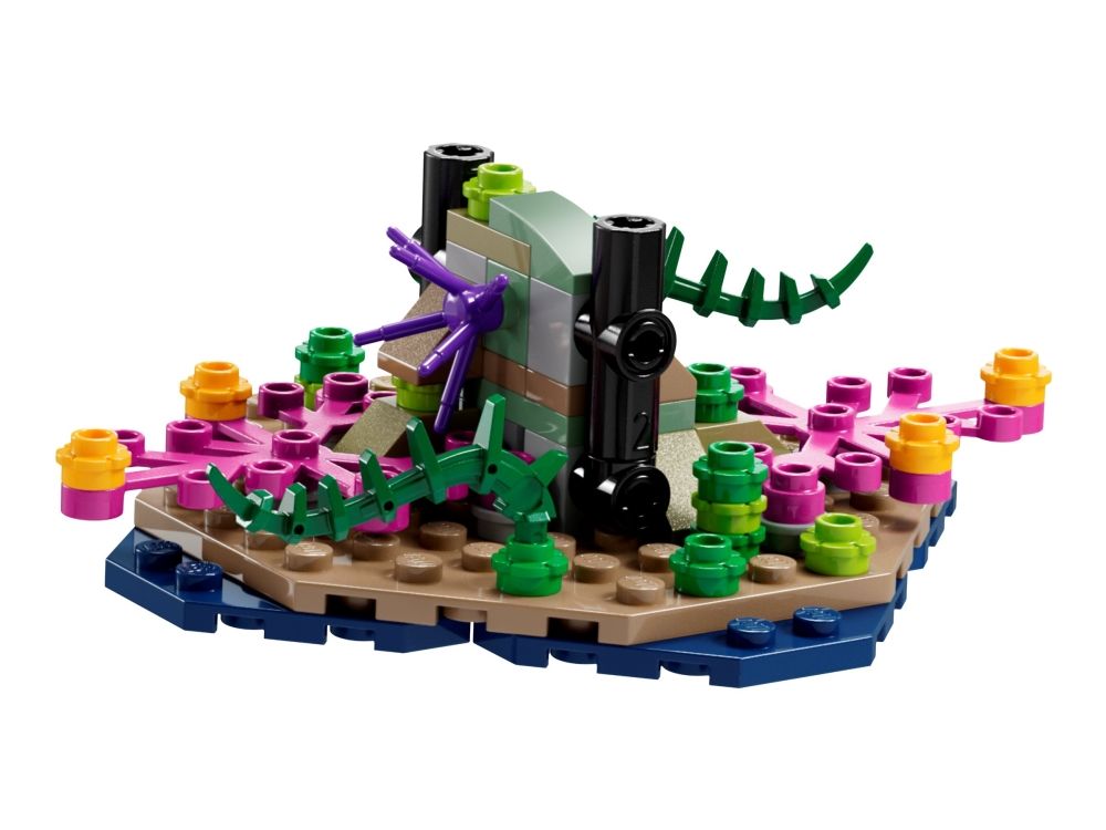 Hva inneholder esken? En bevegelig tulkun, krabbedrakt-undervannsfartøy, to undervannsscenarioer og en utstillingssokkel samt minifigurer av Lo’ak, Tsireya og krabbedraktføreren