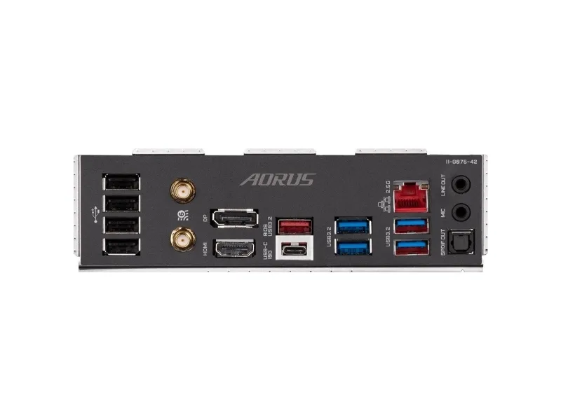 1 x DisplayPort 1 x HDMI 1 x USB 3.2 Gen 2 4 x USB 3.2 Gen 1 4 x USB 2.0 1 x mikrofon - minijakk 1 x lydinnlinje - minijakk 1 x LAN (2.5Gigabit Ethernet) 1 x SPDIF-utgang 2 x antenne