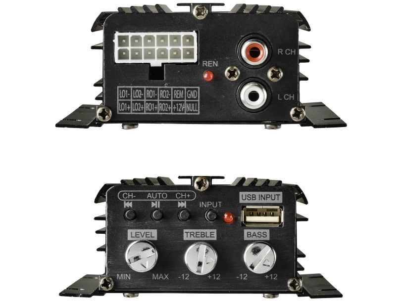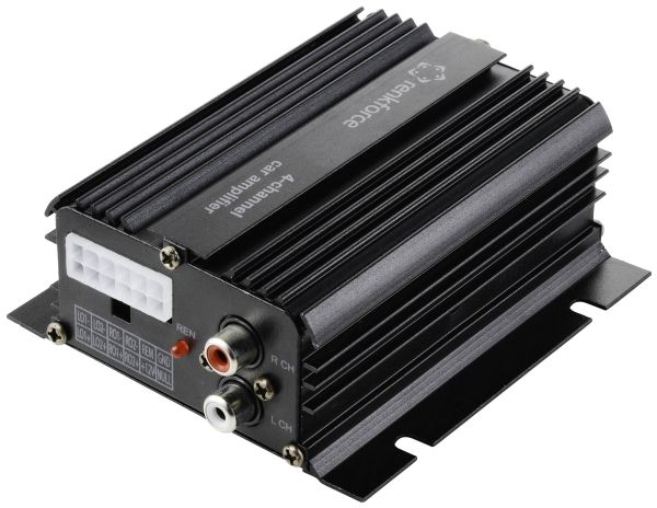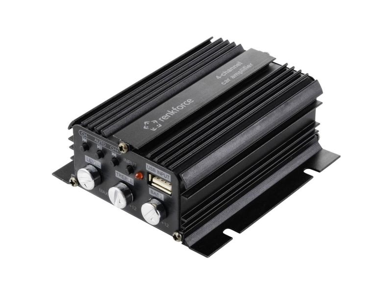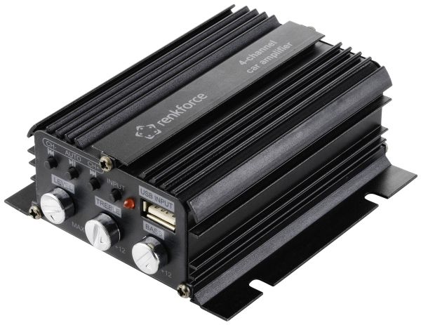 Så nemt kan musikanlægget fra-fabrik bringes op på et andet niveau: Renkforce Renkforce RF-CMP-204 har fire højttalerudgange med hver 50 watt effekt og har low- og high-level-kompatible indgange til tilslutning til den eksisterende kilde.
