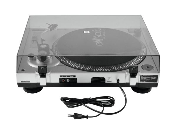 - Delivery includes pick-up system - Adjustable ±10 % speed control - Large start/stop button - Strobe lamp for exact speed adjustment - Delivery includes removable dustcover - Adjustable anti-skating - Shock-absorbing feet