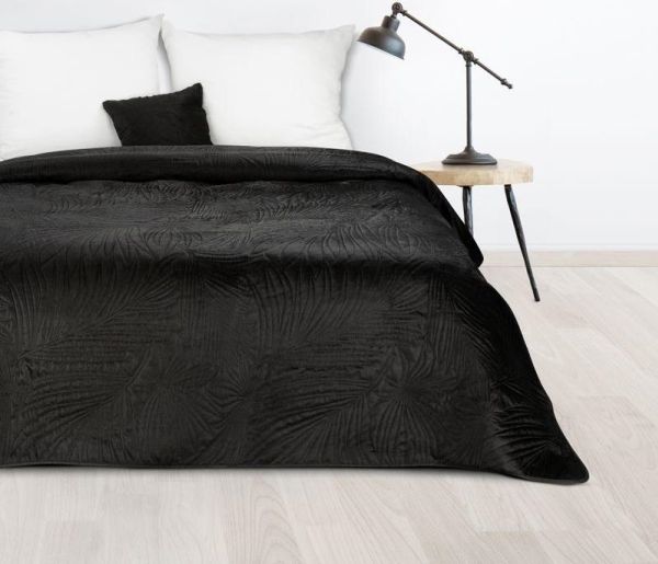 Eurofirany DESIGN 91 LUIZ / 4 Aksominė lovatiesė, dygsniuota karšto spaudimo būdu su palmių lapų raštu, 170X210 cm, spalva: juoda Lovatiesė