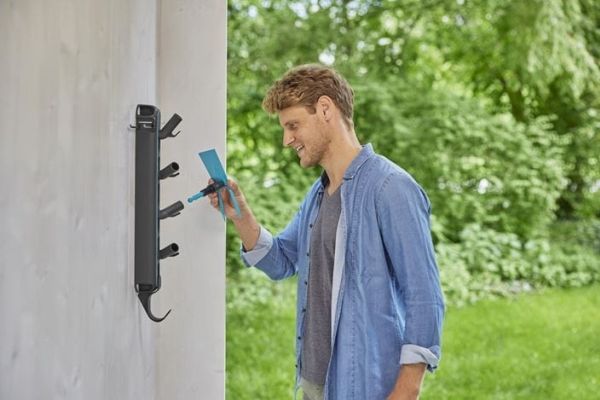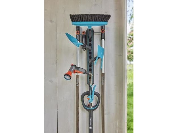 Pladsbesparende opbevaring til GARDENA-Combisystem enheder og skafteMed 4 frit stikbare og i 30°-trin monterbare apparatholdereEgnet til GARDENA-Combisystem og Original GARDENA-systemet