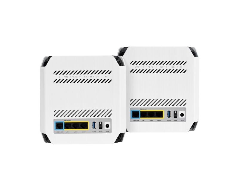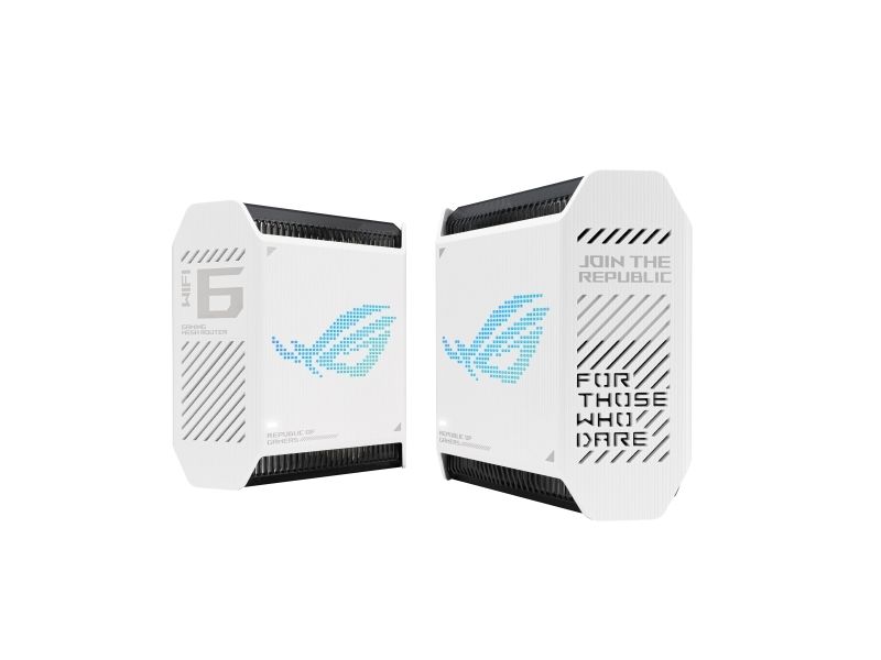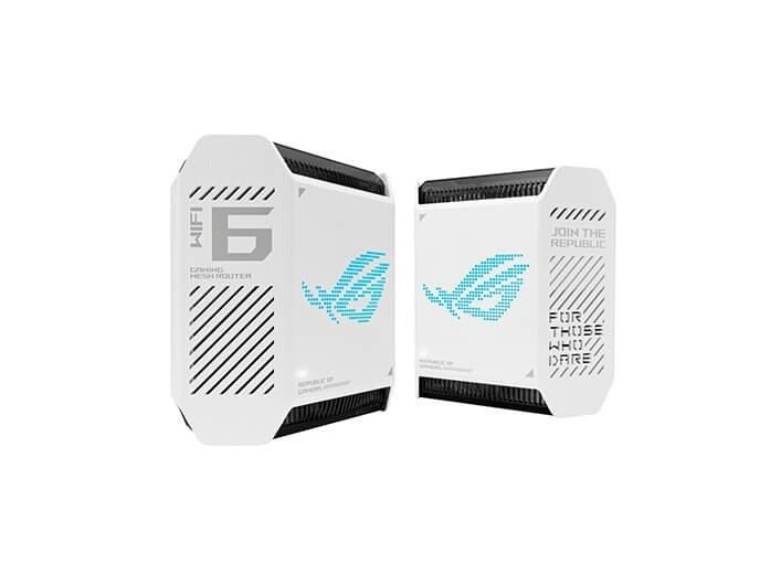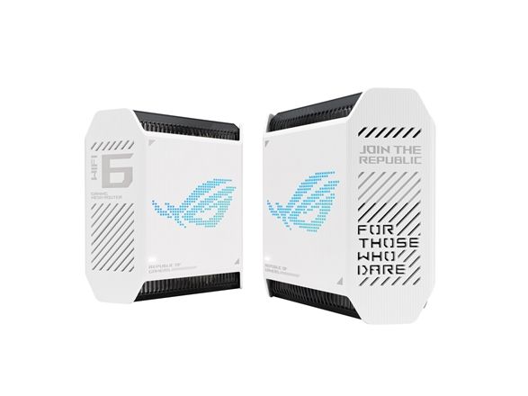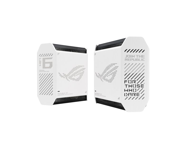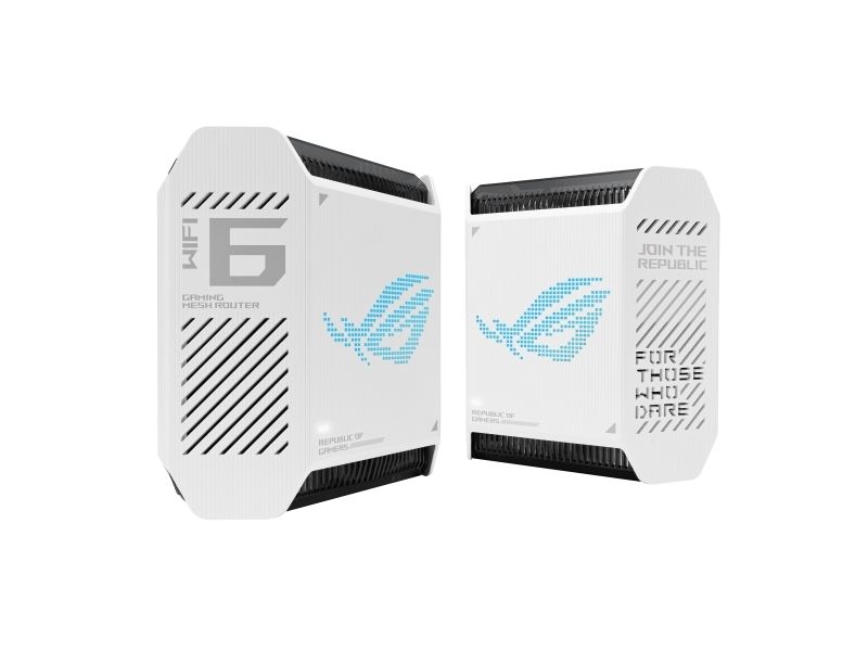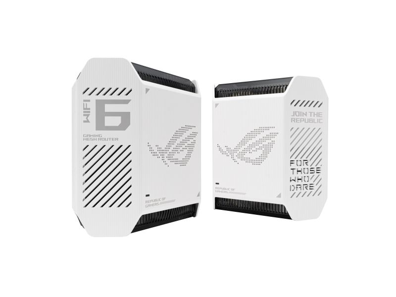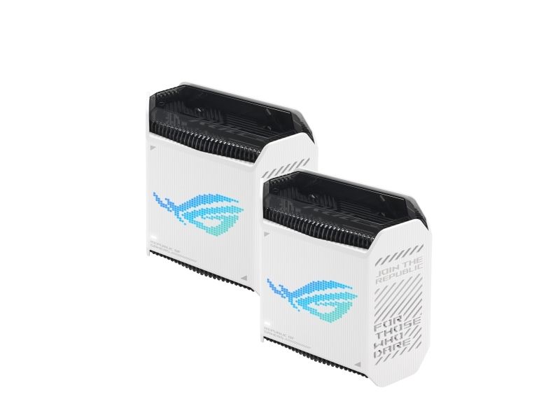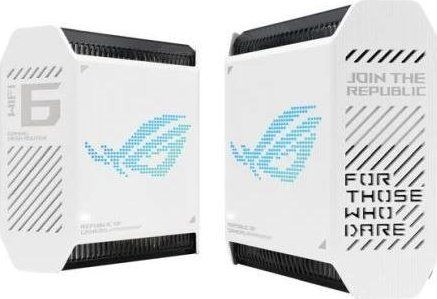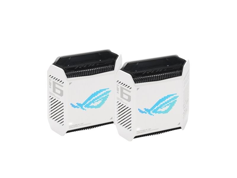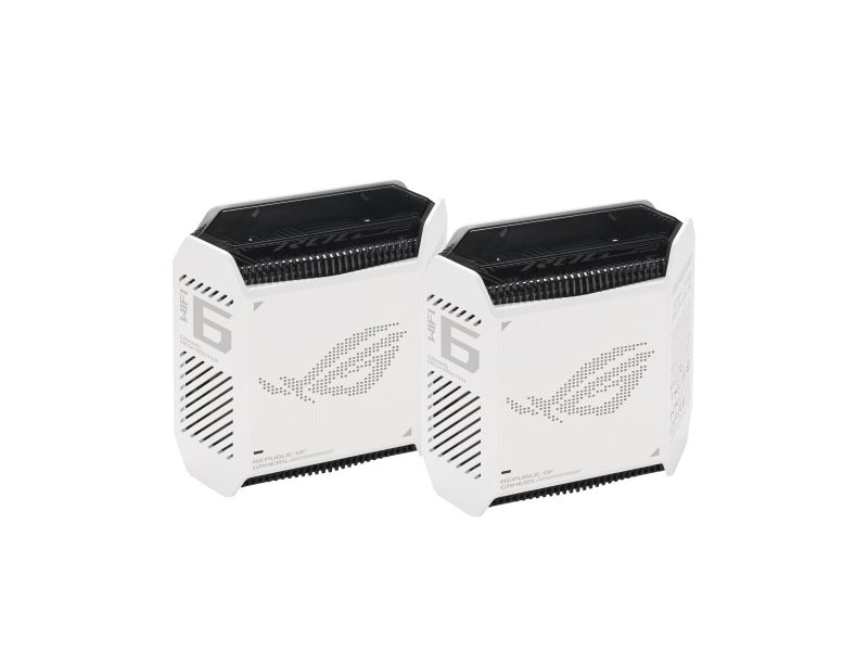 ASUS ROG Rapture GT6 AX10000 sett med 2 Tri-Band Gaming Mesh WiFi-system kombinerbar ruter (tilknytning som 4G- og 5G-rutererstatning, WiFi 6, opptil 538 kvm dekning, 6+ rom, 2,5G-port, 160 MHz-kanaler, AIMesh) hvit