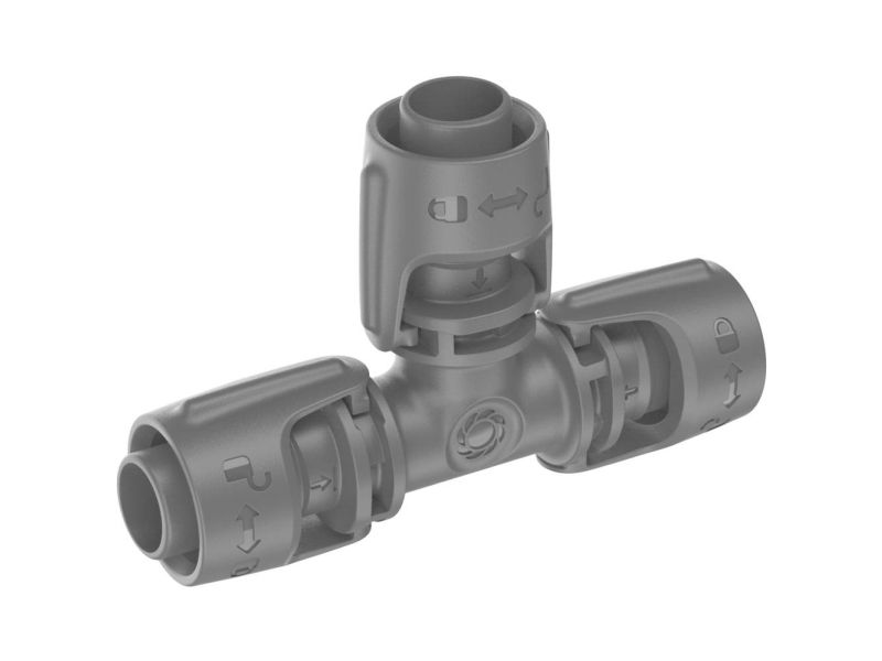 Patenteret forbindelsesteknik for en hurtig, enkel installation og fleksibel udvidelse af micro-drip-systemet, ideal til forgrening og forbindelse af 13 mm rørEnkel og intuitiv installation af de to medfølgende T-stykker takket være smart design med integrerede symboler og feedback-klik som et godt hørbart signal i en lukket positionMicro-drip-systemet er i kombination med basisenhed 1000 (best.-nr. 13333-20) eller basisenhed 2000 (varenr. 13310-20) pålidelig tætBæredygtig genanvendelig takket være enestående Quick & Easy-forbindelsesteknik, uden at micro-drip-systemkomponenterne beskadiges ved flere anvendelserT-stykket er et kvalitetsprodukt Made in Europe.