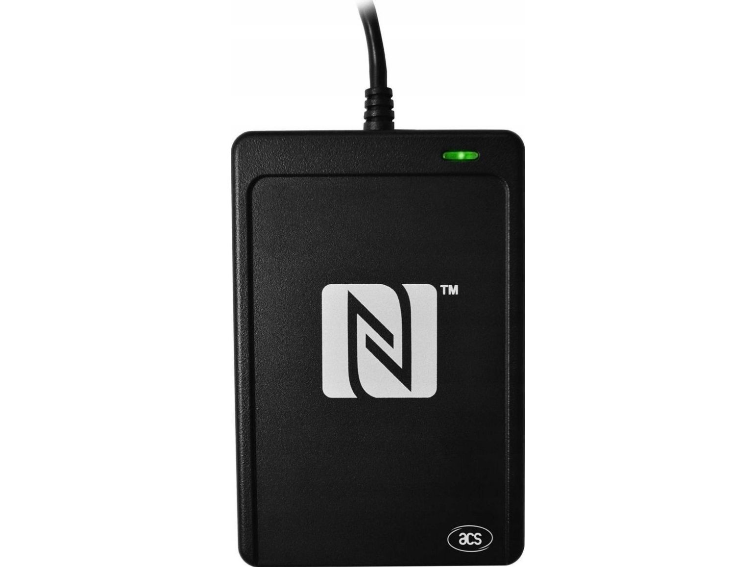ACS ACR1252U. Operating voltage: 5 V. Width: 65 mm, Depth: 98 mm, Height: 12.8 mm. Cable length: 1 m. Product colour: Black