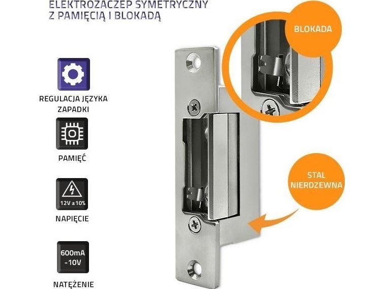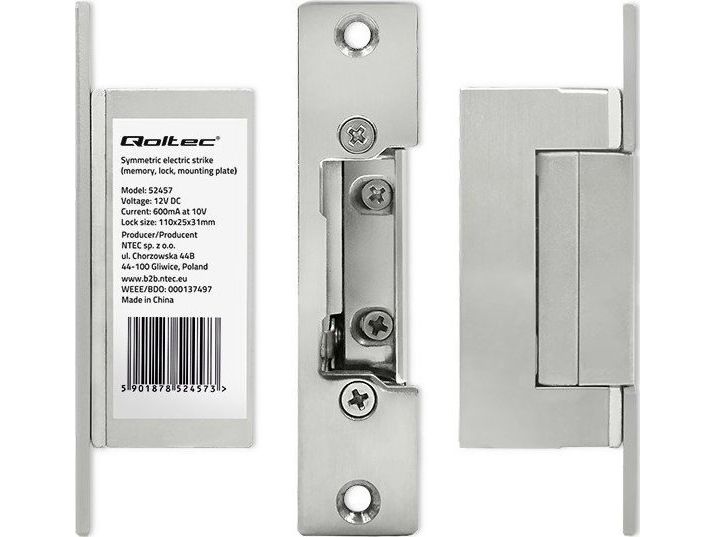 Qoltec symmetrisk elektrisk sluttstykke med minne og blokkering | 600mA | 12V