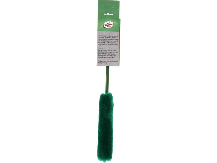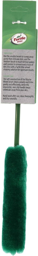 Turtle Wax Woolie Wheel Brush Medium er en hjulbørste som hjelper deg å rengjøre felgene dine enkelt og effektivt! Børstehodet er laget av kjemisk bestandig syntetisk ull og håndtaket er laget av plast. Børsten inneholder ingen metalldeler, noe som sikrer skånsom, ripefri rengjøring av felger. Med denne felgbørsten kan du komme inn på selv de vanskeligste stedene, på grunn av det lille kompakte børstehodet.