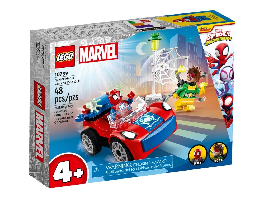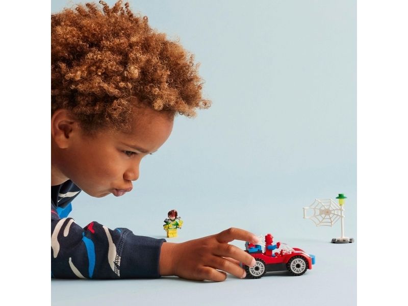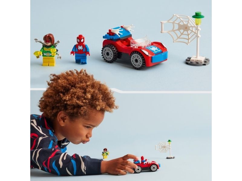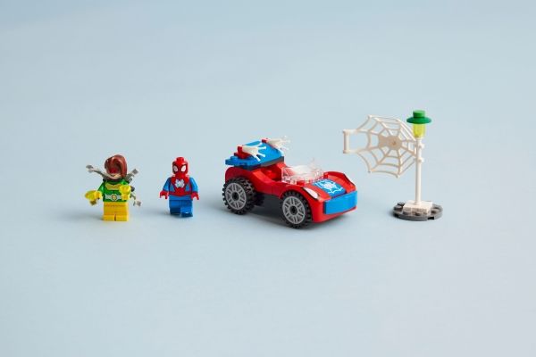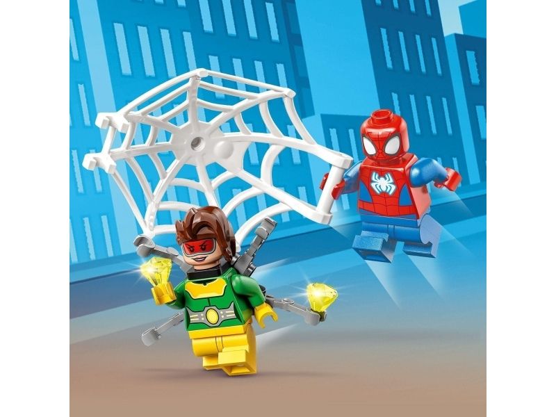 Et diamanttyveri kickstarter handlingen og gir barn utallige fantasifulle eventyr. Settet inneholder to minifigurer – Spidey og Doc Ock – samt Spideys bil og to selvlysende nett-elementer. Et spesielt startkloss-chassis inspirerer barn til å bygge Spideys bil«helt selv». Settet inkluderer enkle instruksjoner i form av en fargerik bildeveiledning og, for ekstra digital moro, får barn LEGO Builder appen med verktøy for zooming, rotering og visning av modellen mens de bygger.