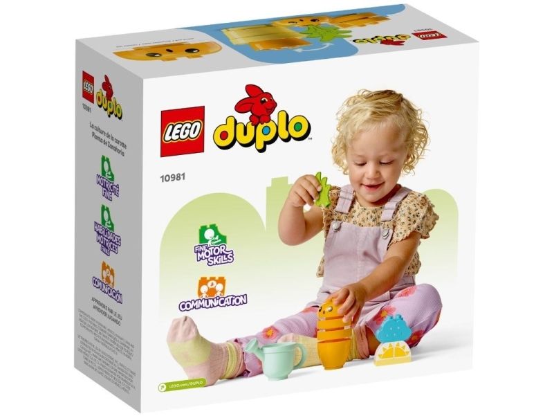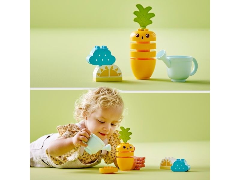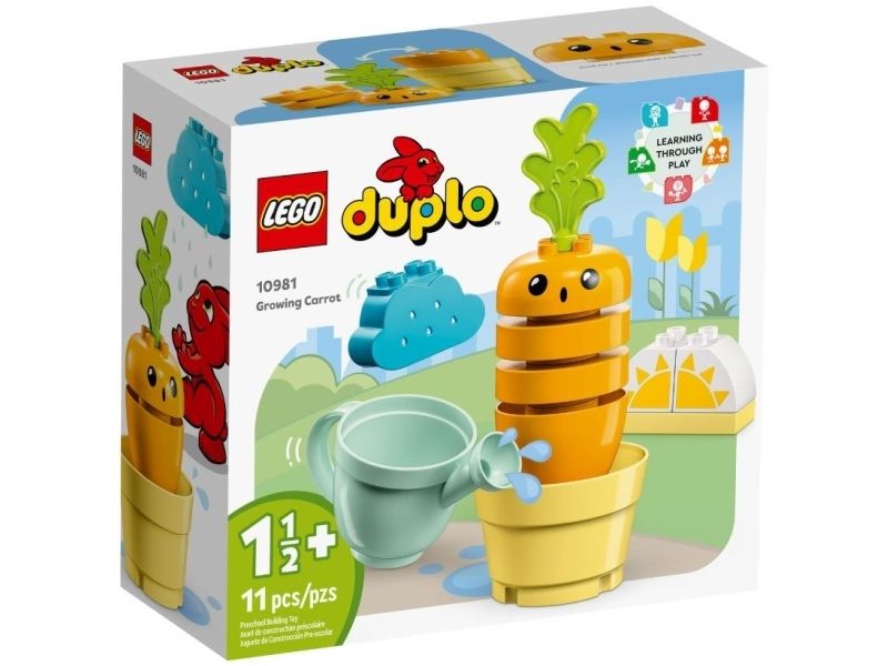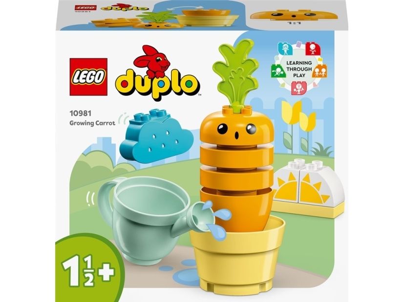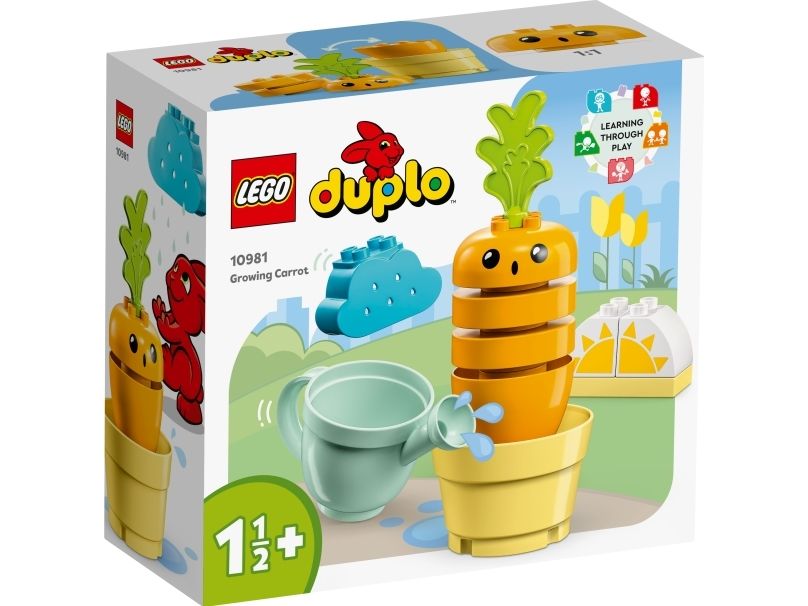 1. Stabler av moro – LEGO® DUPLO® Min første gulrot som vokser (10981) lærer barn fra 18 måneder om sunne og bærekraftige vaner og hvordan man får planter til å vokse. Barna får også øving i i stable