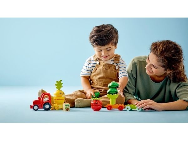 1. Bondegårdlek for matglade smårollinger – LEGO® DUPLO® Min første frukt- og grønnsakstraktor (10982) styrker barns motorikk og lærer dem om hvordan planter vokser