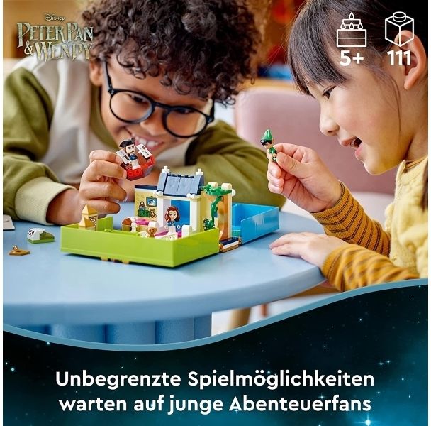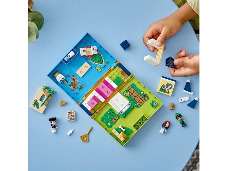 Endeløse historier venter Disney- og Peter Pan-fans fra 5 år og oppover i dette LEGO | Disney settet Peter Pan og Wendys eventyrbok. Boken er basert på den kommende Peter Pan og Wendy-filmen og inneholder Darling-huset med soverom, Big Ben, de fortapte guttenes gjemmested, Dødningeøya, et sjørøverskip, tre LEGO mikrodukkefigurer, en LEGO dyrefigur og en nøkkel. LEGO Builder appen veileder barna på et enkelt og intuitivt byggeeventyr, lar dem zoome inn og rotere modeller i 3D, lagre sett og følge fremdriften.