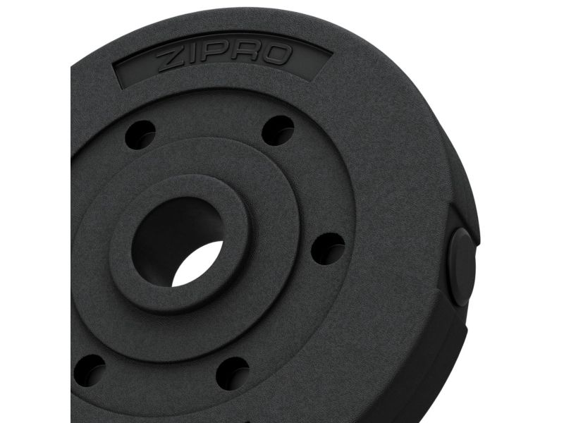 Zipro bitumenbelastning er en allsidig løsning, nyttig uansett hvilken type vekttrening du velger. Hullet med en diameter på 31 mm gjør at vektene passer til de mest brukte 28 mm stengene. Dette betyr at det bare tar et øyeblikk å plassere dem på stangen eller manualene.