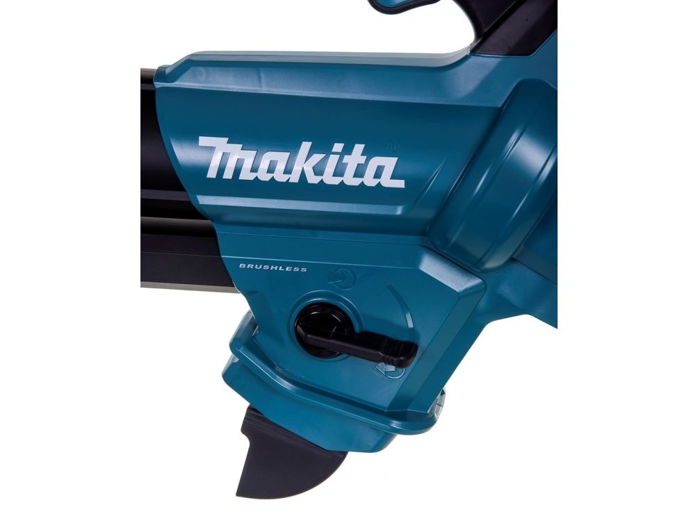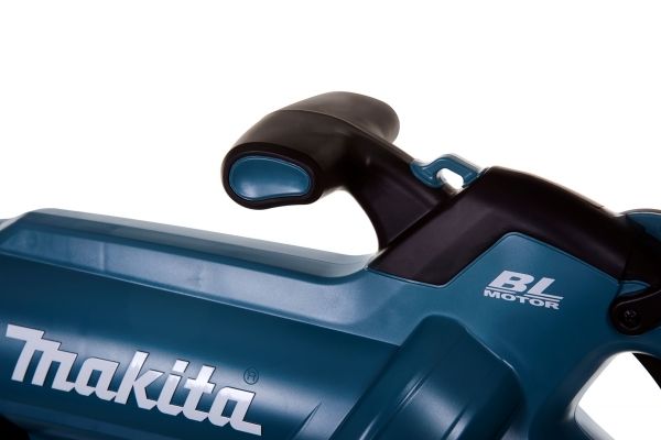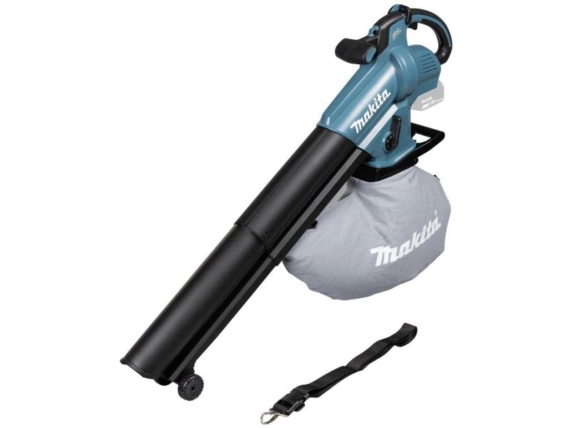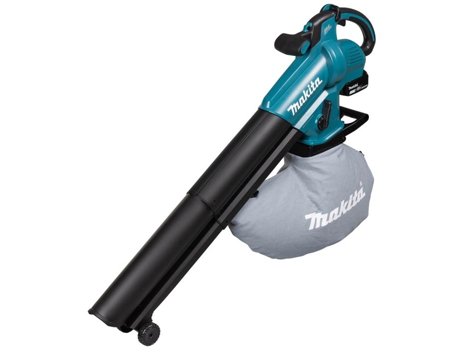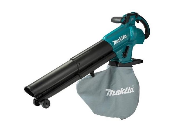 DUB187Z batteridrevet løvblæser og -suger Komfortabel batteridrevet løvsuger og -blæser til at fjerne blade. Maskinen kan føres kraftskånsomt over kørerullerne i sugerens ende. Elektronik-kontakt med blød start for en glidende start af maskinen. Hastigheden kan indstilles trinløst med en drejeknap. Desuden kan maskinen indstilles til kontinuerlig drift. 25 l opsamlingssæk volumen.