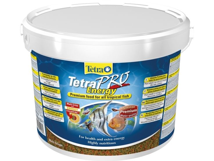 Tetra Pro Energy crisps. Hovedfoder til alle prydfisk for et langt og sundt fiskeliv.Består af over 40 værdifulde næringstoffer.Normal og XL-flager muliggør en ideelt tilpasset ernæring til den pågældende fiskestørrelse. 10 L