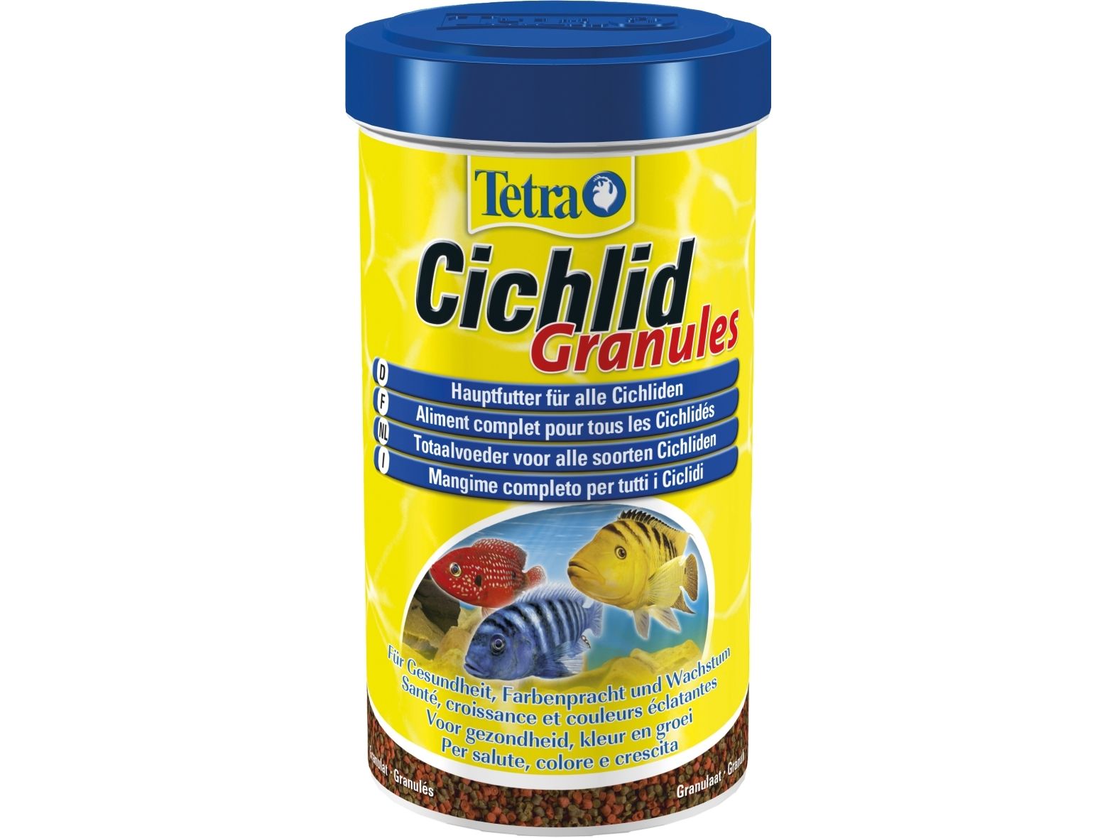 TetraCiclhlid granulat.Basisfoderblanding for alle typer af Mellemstore Cichlider - med den patenterede BioAktive ® formel, som består af to forskellige granulater. Blandingen er iddel for alle Cichlid typer.Indeholder naturlige carotinoider for mere intens farve Indhold: 500 ml