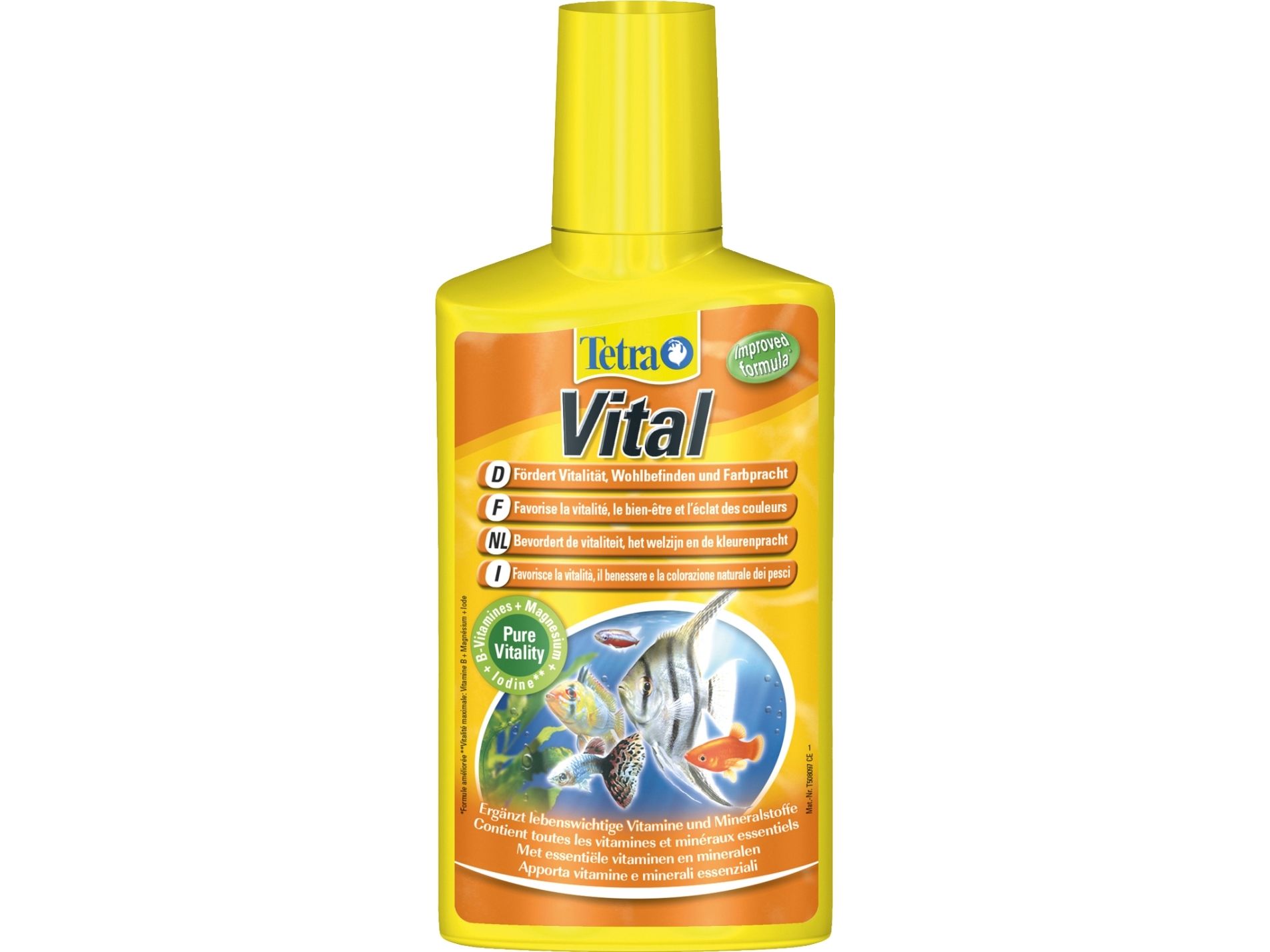 Tetra Vital. Fremmer Vitalitet, velvære og farve. Skaber Biologisk Balance og et naturligt miljø. Indeholder b-vitaminer og jod. Effekten optimeres med Aquasafe. Til ferskvandsakvarier. Indhold:250 ml