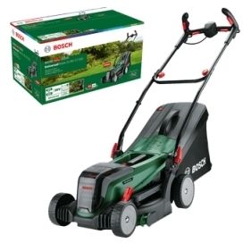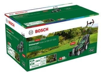Bosch Home and Garden UniversalRotak 2x18V-37-550 Længere driftstid med Bosch Syneon TechnologyElektronikken analyserer konstant energibehovet og udtager kun lige så meget energi som det er nødvendigt for en optimal ydeevne til krævende anvendelser eller maksimal levetid ved mindre intensivt arbejde. Derudover forener den børsteløse motor en længere levetid med høj ydeevne, mens dens kompakte størrelse også gør plæneklipperen lettere.Sund og bekvem holdning ved plæneklipningTakket være Bosch ErgoFlex-greb foretages klipning med mindre besvær og maksimal kontrol. Bosch ErgoFlex-greb reducerer belastningen af arme og ryg med en perfekt holdning ved plæneklipning og sikrer således den optimale komfort.Hurtigere og bedre resultater ved kanterneBosch plænekammer accelererer arbejdet med rene skær på kanter og vægge, så det er ikke nødvendigt at udføre noget arbejde. Derudover er Universal Rotak 2x18V-37-550 en del af 18V Power FOR ALL ALLIANCE, bestående af enheder fra førende mærker. Det medfølgende batteri er kompatibelt med alle produkter fra 18V Power FOR ALL ALLIANCE og kan dermed bruges til alt havearbejde indtil rengøring og krævende opgaver i hjemmet.