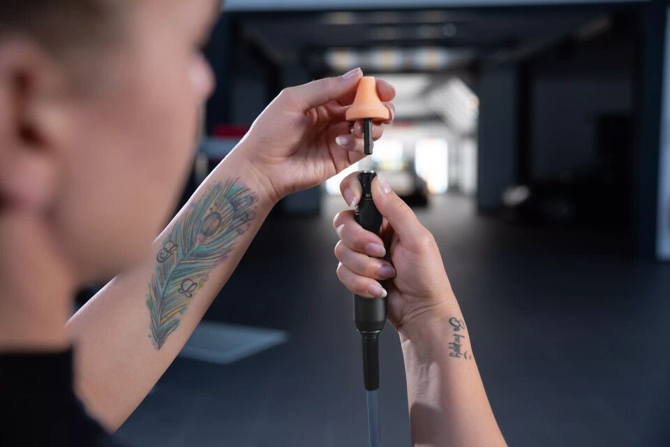 | Sæt bestående af 1 L-BOXX® 102 bæretaske, 6 koniske og 6 cylindriske polersvampe i blød, medium og hård (2 af hver). 2 x Polersvamp, cylindrisk, orange, middel (507771) 2 x Polersvamp, cylindrisk, violet, hård (517763) 2 x Polersvamp, cylindrisk, grøn, meget hård (517755) 2 x Polersvamp, konisk, orange, middel (507828) 2 x Polersvamp, konisk, violet, hård (517801) 2 x Polersvamp, konisk, grøn, meget hård (517798) 1 x Bæretaske L-BOXX® 102 |