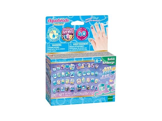 *Inkluderer Aquabeads negle og dekorationer, inklusive de skinnende farve negle med glitterfornemmelse. Skab flere perledesigns med Aquabeads Nail Studio komplet sæt og tema refill sælges separat
