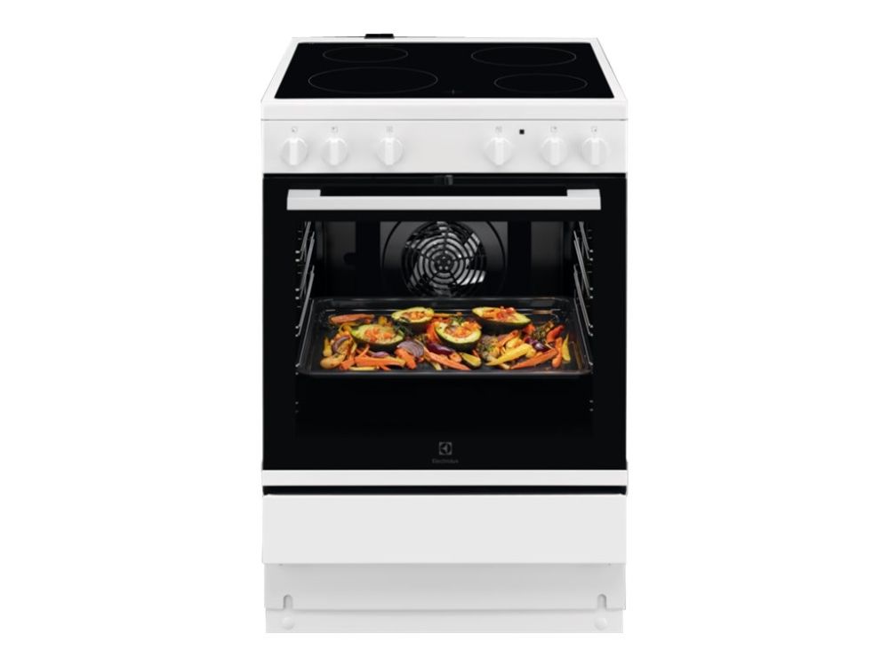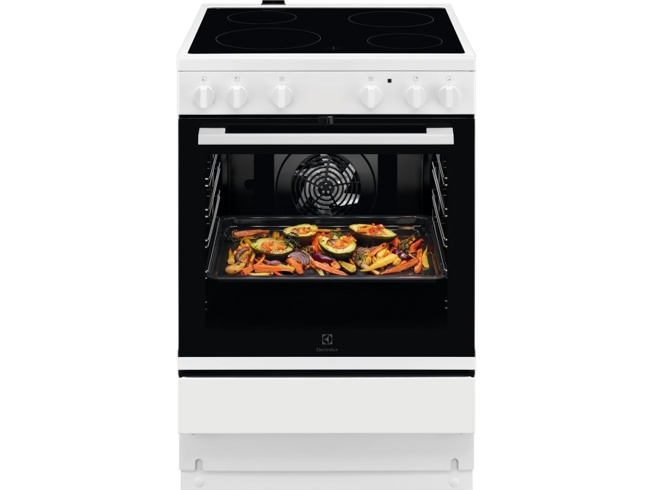 Oppdag Electrolux SurroundCook-komfyren, en blanding av stil og funksjonalitet for kjøkkenet ditt. Denne frittstående elektriske komfyren har en keramisk platetopp med fire stråleelementer som tilbyr allsidige tilberedningsmuligheter med ni effektnivåer. Den store ovnskapasiteten på 73 liter, supplert med multifunksjonelle tilberedningsprogrammer, gir mulighet for et bredt spekter av kulinarisk utforskning, fra baking av pizza til grilling av kjøtt. Sikkerhet er en prioritet med funksjoner som barnesikring, kjølig dør og viftekjølesystem. Vedlikehold er en lek takket være Easy Clean-emaljen innvendig og den elegante keramiske overflaten. Inkludert tilbehør som dryppform, stekeplate og grillbrett gjør matlagingsopplevelsen enda bedre. Med den svarte overflaten og glassdøren tilfører dette komfyrtoppen et snev av eleganse til enhver kjøkkeninnredning.