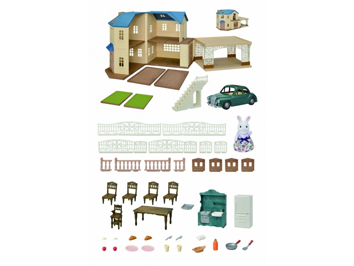 *Get all you need to play in this great value set, featuring Snow Rabbit mother in a special outfit, along with a magnificent house with its own carport. This set also includes a car and plenty of furniture and can be played on its own.