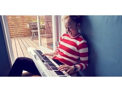 Slim & Stylish Portable Design With the CT-S200 you can enjoy music whenever and wherever you like. Its compact size of 930 mm x 256 mm x 73 mm is 30% smaller in volume than the CTK-2500 and CTK-2550 models, and it boasts roughly 16 hours of alkaline battery life*. With a grip at the top of the keyboard and a weight of only 3.3 kg, it couldn’t be easier to carry. The design incorporates rounded edges and corners, making it safely portable.