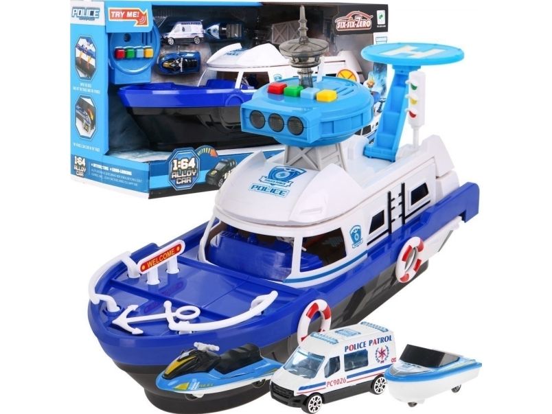 Ramiz Sett med leker lekebil båt motorbåt politi